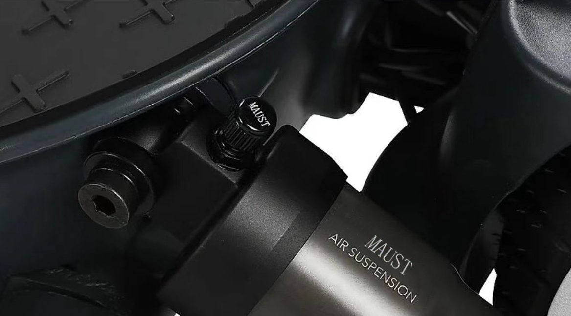 MODE 型号M5 AIR HYPER内置日规高性能模具弹簧,压力值通过调整空气压力调节上下可调换气嘴改变弹簧压力值副气室不可充气仅作为缓冲使用专为滑板车重型机车设计双直线轴承增强活塞寿命单活塞密封设计